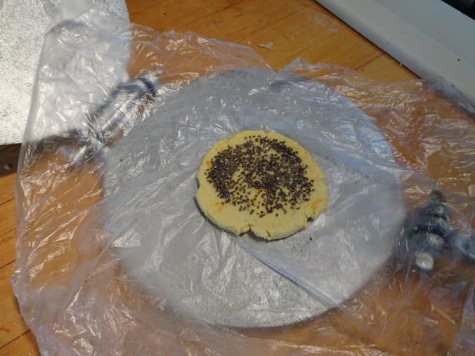 I heated a big wheat flour tortilla in by biggest pan JUST until pliable, an important step in making any burrito. Skipping this step makes for cracked, loosely rolled burritos. That is never good, but for this project would be a disaster.