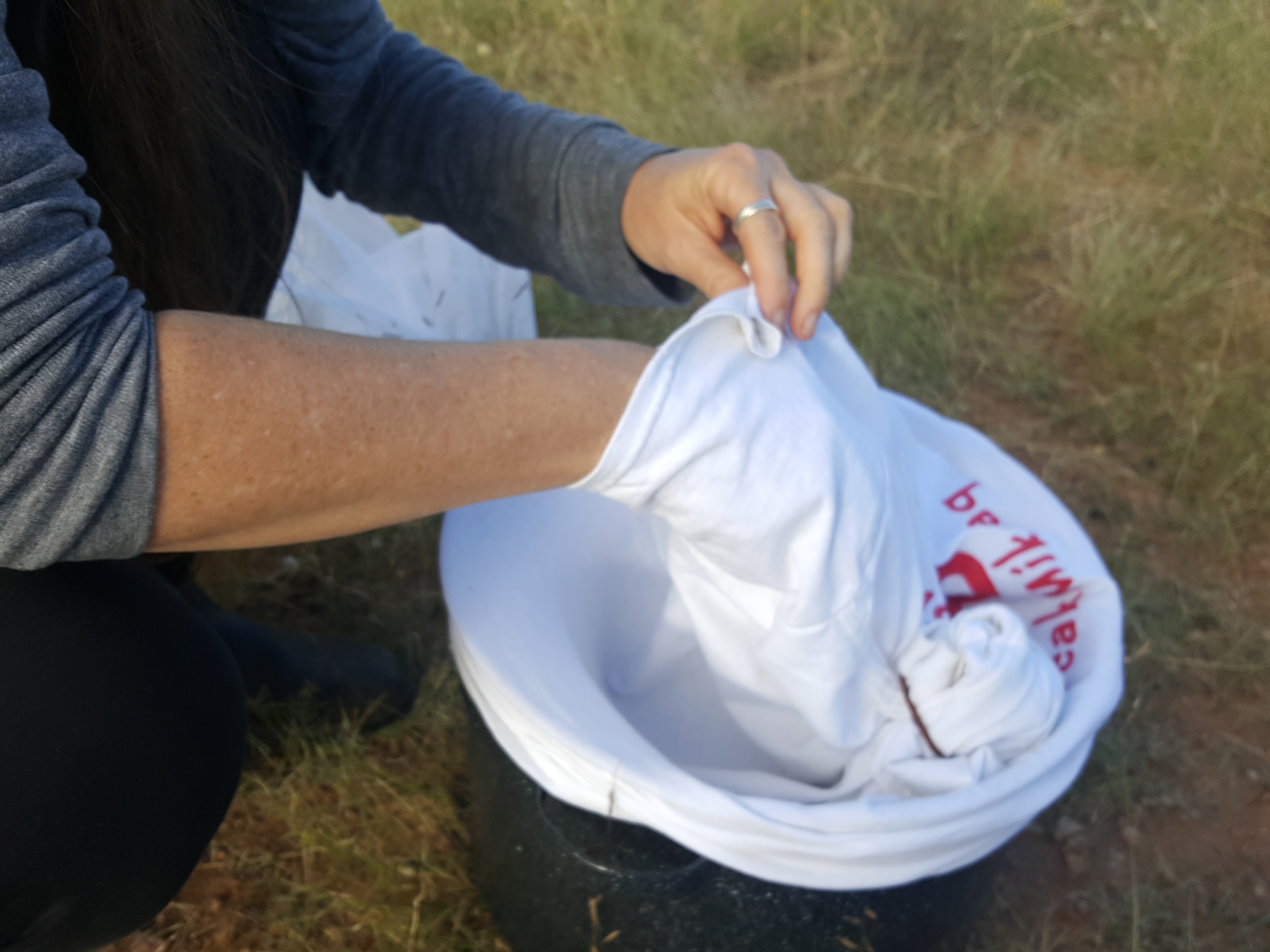 Nicole fashioned an way to hold our catch without letting any escape when we caught another.