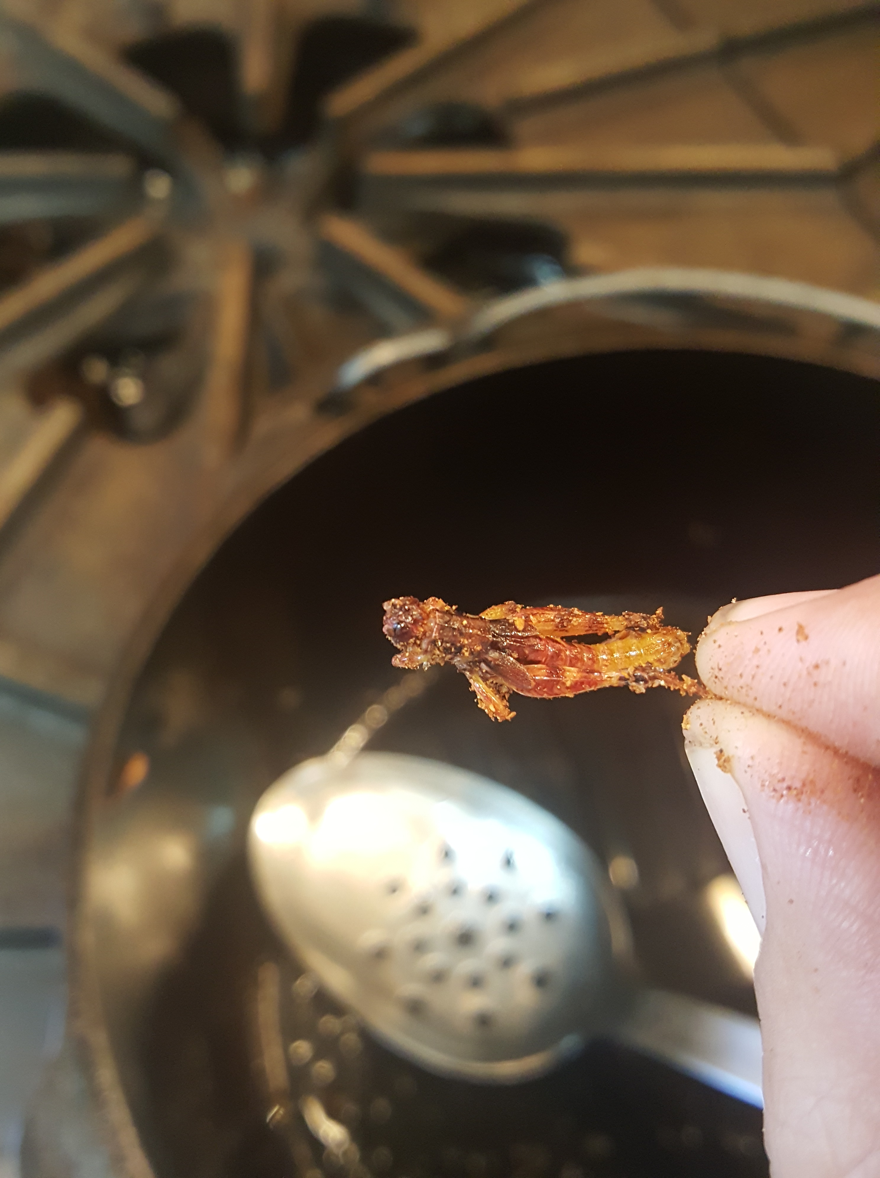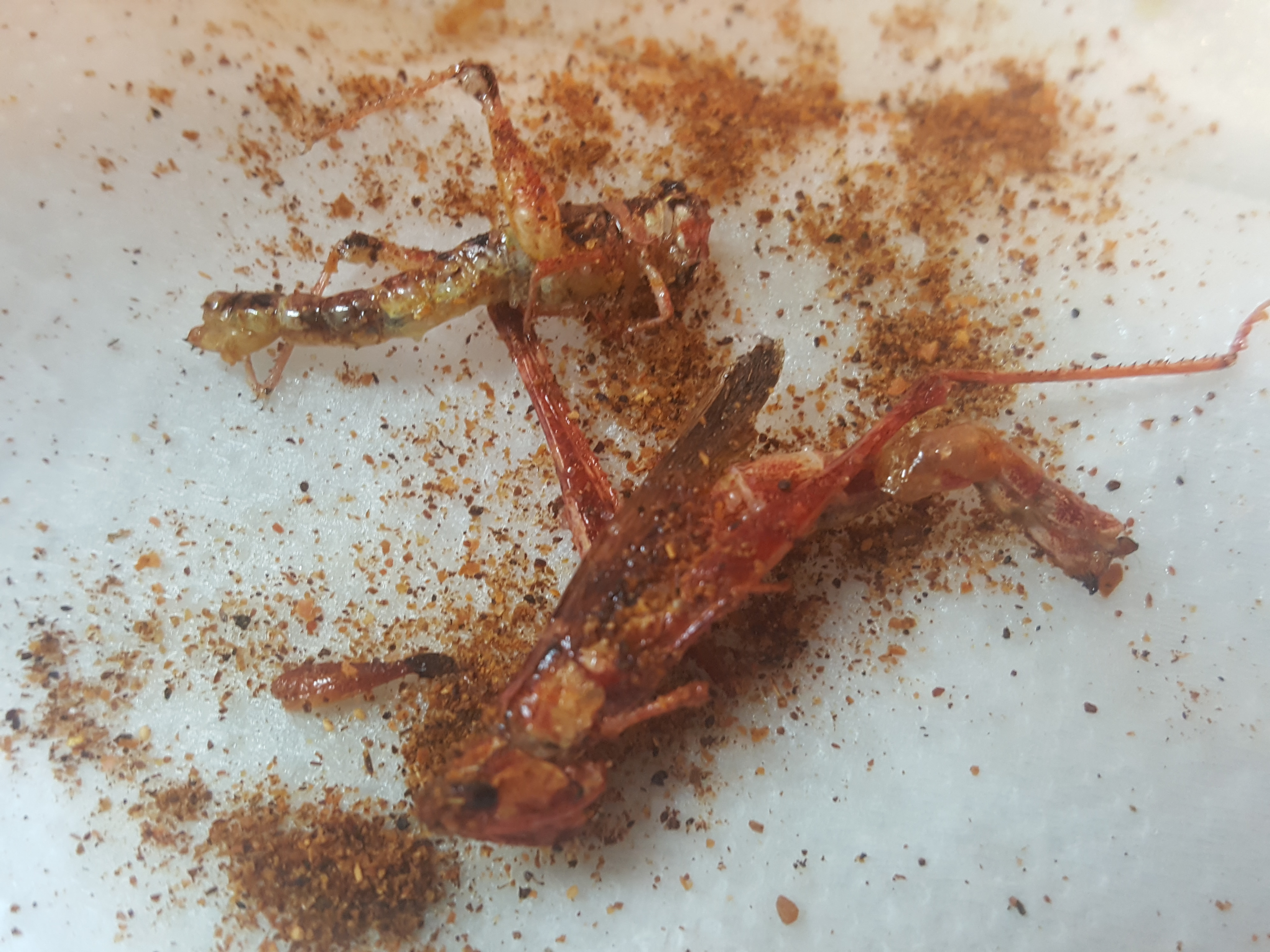 But after all that work, I needed to at least try them. Nicole knew from previous experience to eat the small ones whole, but remove the wings and legs from the larger ones.