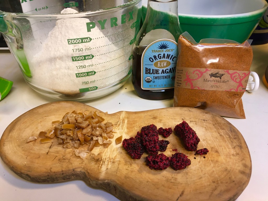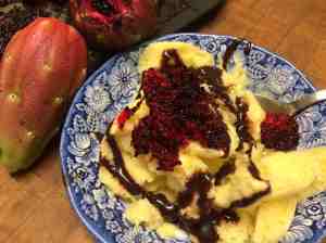 I chipped off a tiny pea-size piece and tried tasting it—an unusual flavor and a crunch, with a hint of the sugary sap that the insect sucks through its piercing mouthparts. Amazing to learn that it is now being used in innovative gastronomy as flavoring for salsas and aguachiles. (See Wikipedia for a good aguachile recipe.) [By the way, this goma de Sonora is not to be confused with another Goma or Gomaae, a Japanese roasted sesame sauce.]