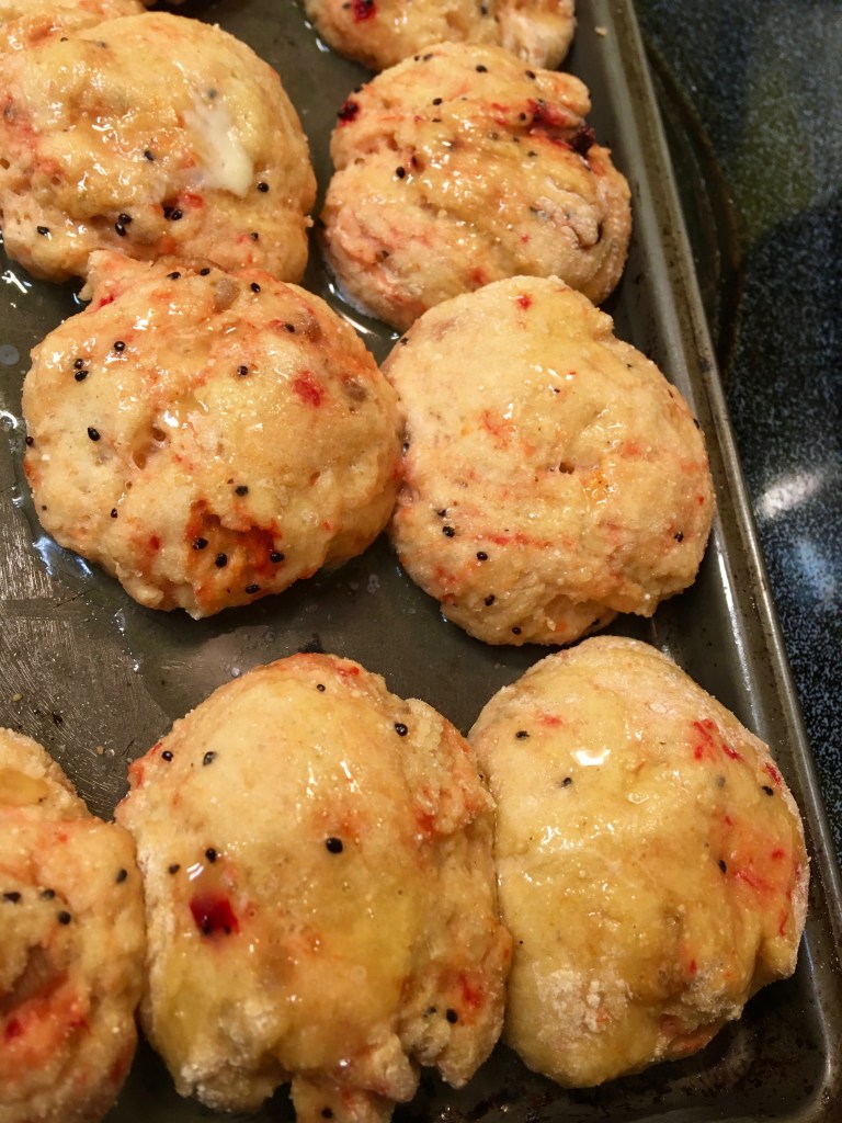 The cute-sy “baby bonnet” flowers drew me in for a closer look and another surprise awaited me on its hidden stems. What in the world was that gross-looking orange/amber waxy stuff like a growth on the twigs? I had to find out.
