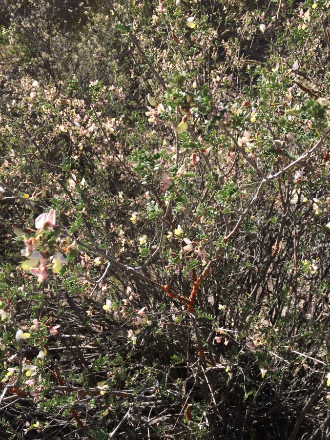 This twiggy legume–Coursetia glandulosa— with its spray of white and yellow pea flowers in spring may offer a rare surprise…. (MABurgess photo)