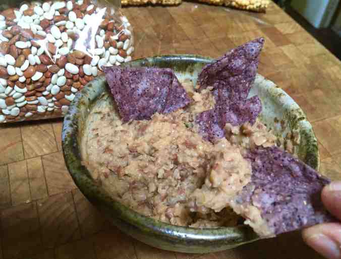 Energize your refried teparies with your favorite chile spices, cumin powder, and/or hot sauce and voila! –you have an instant healthy dip that keeps for a week in the frig–if it doesn’t get eaten up right away! “Serving suggestion”–serve teparies with blue corn chips for a complete protein. Yummmm!